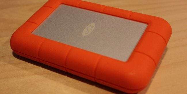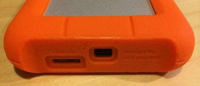Setelah mengeluarkan drive dari kotak pengiriman, hal pertama yang Anda perhatikan adalah karetnya sangat oranye, seperti tanda jalan atau semacamnya. Poin dihapus untuk terlihat pasti. Tentu saja, Anda dapat melepaskan lapisan luar karet jika Anda tidak akan melakukan apa pun dengan drive tetapi menempelkannya di atas meja. Kami akan menyarankan untuk membiarkannya aktif, karena mereka mengklaim Anda dapat menjatuhkannya dari ketinggian 4 kaki tanpa kerusakan - dan itu mengacu pada versi hard drive yang berputar. (Mereka tidak menyarankan untuk menjatuhkannya