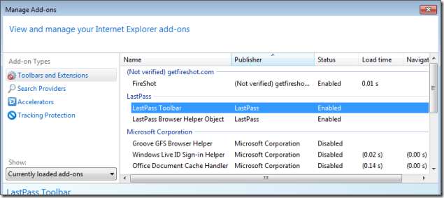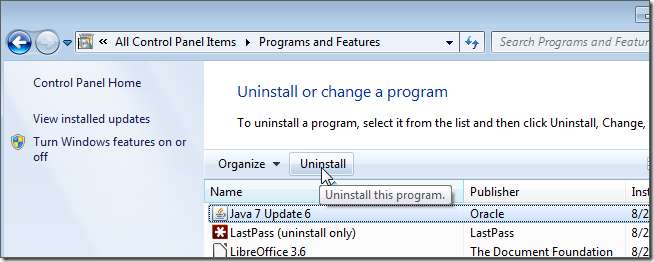 Temukan plugin Java dalam daftar, klik di atasnya, lalu klik tombol Nonaktifkan. Anda akan melihat bahwa tangkapan layar ini menggambarkan cara menghapus LastPass, tetapi ide yang sama berfungsi untuk keduanya.