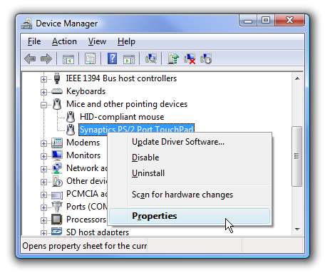 Setelah Anda membukanya, telusuri perangkat yang bermasalah, klik kanan dan pilih Properties.