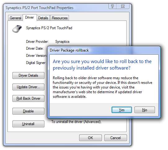 Seperti yang Anda lihat dari perangkat pilihan saya, driver touchpad terbaru menyebabkan masalah bagi saya, jadi saya memutarnya kembali.