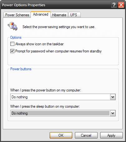 Di XP, buka Start Control Panel Power Options Di sinilah Anda dapat membuat perubahan yang diperlukan.