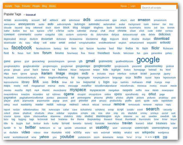 Mayoritas skrip pengguna dapat ditemukan di dua situs yang berbeda, yang pertama dinamai userscripts.org dengan tepat, dan Anda dapat menjelajahi menurut tag atau menelusuri skrip.
