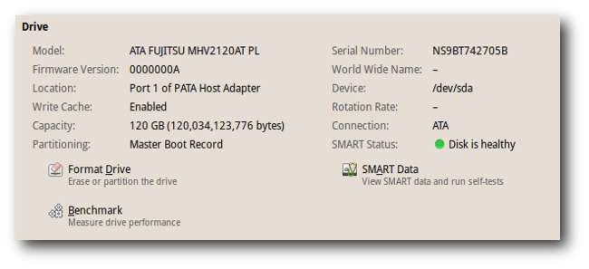 Tombol 'SMART data' memungkinkan Anda melihat fitur SMART dari hard disk Anda.