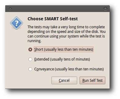 Sebagian besar implementasi sistem SMART memungkinkan pengguna untuk melakukan tes mandiri untuk memantau kinerja dan keandalan hard disk mereka. Cara termudah untuk melakukan pengujian sistem SMART dengan Ubuntu adalah menggunakan 'Disk Utility' di bawah menu 'System'> 'Administration'.