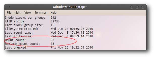 Parameter jumlah pemasangan memberi tahu kita bahwa Ubuntu memindai hard disk Anda setelah 33 pemasangan disk.