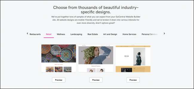 Ayo ayah , layanan registrar domain dan hosting web, juga memiliki pembuat situs web sendiri. Ini adalah editor seret dan lepas berfitur lengkap, dengan beberapa template siap pakai yang bagus untuk Anda gunakan. Anda juga mendapatkan semua manfaat hosting di GoDaddy, salah satu penyedia hosting web terbesar.