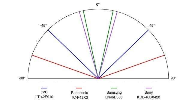 Sudut Pandang: Tidak seperti angka yang ditarik keluar yang Anda dapatkan dengan rasio kontras, sudut pandang cukup konkret. Jika ini adalah pertama kalinya Anda berbelanja HDTV, ide sudut pandang mungkin akan membuat Anda bingung karena televisi CRT analog lama tidak memiliki sudut pandang — selama Anda bisa melihat layar, Anda bisa mendapatkan gambar yang jelas darinya . Sebaliknya, HDTV layar datar memiliki sudut pandang tertentu. Jika Anda keluar dari sudut pandang itu, kualitas gambar akan menurun dengan cepat (tergantung pada set dan konstruksi layar, segala macam hal terjadi: warna terbalik, gambar desaturasi, dll.) Untuk sebagian besar pengaturan dengan HDTV pada dudukan di depan sofa, ini bukan masalah besar. Namun, jika Anda membeli televisi berukuran besar, atau memasang HDTV di dinding, Anda sebaiknya memeriksa sudut pandang terlebih dahulu. Anda tentu tidak ingin mengetahui, setelah melalui upaya memasang HDTV di dinding, bahwa cara favorit Anda untuk menonton film (berbaring di kasur futon di dekat lantai ruang tamu) membuat wajah orang menjadi hijau.