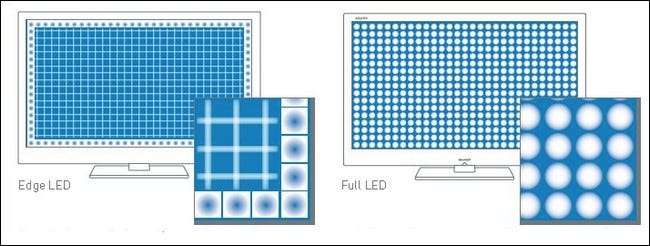 Salah satu fitur terbaru di pasaran adalah pencahayaan LED penuh. Pencahayaan LED penuh mengandalkan serangkaian LED di belakang keseluruhan gambar, bukan hanya bagian tepinya. Pabrikan memasang desain pencahayaan baru yang memungkinkan pencahayaan yang lebih terang dan lebih merata, serta memungkinkan peredupan lokal untuk meningkatkan kekayaan warna hitam. Meskipun ini masuk akal (Anda tidak dapat mematikan setengah tabung CFL misalnya tetapi Anda dapat mematikan LED individu dalam larik) kami sangat menyarankan untuk memeriksa set secara langsung untuk memutuskan apakah itu sepadan dengan premium.