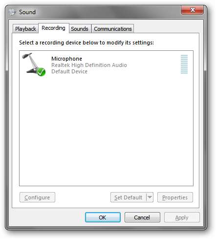 Jika Anda tidak mendengar apa pun, atau jika terlalu keras atau terlalu pelan, klik kanan pada indikator kontrol volume di baki sistem, dan pilih Perangkat Perekaman.