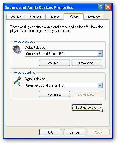 Beralih ke tab Voice dan klik tombol Test hardware.