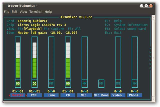 Buka jendela terminal (Aplikasi> Aksesoris> Terminal) dan ketik perintah alsamixer.dll .