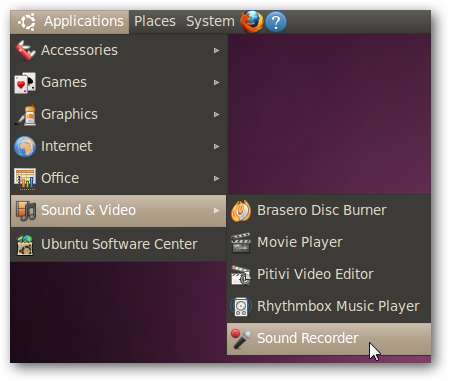 Untuk menguji mikrofon Anda, klik Applications> Sound & Video> Sound Recorder.