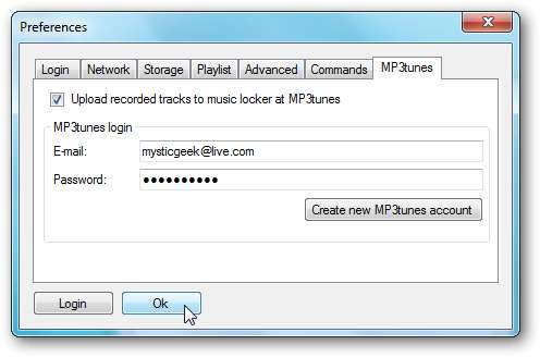 Fitur keren lainnya adalah mengunggah trek yang direkam ke loker musik di MP3tunes sehingga Anda dapat mendengarkan musik Anda di mana pun ada koneksi Internet.