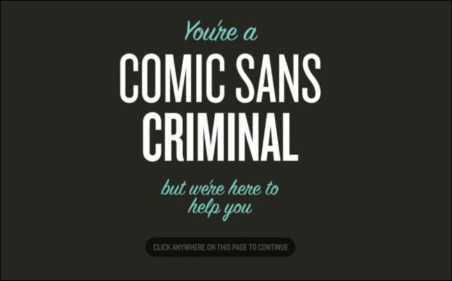 Situs web "Ban Comic Sans" telah meninggal, tetapi masih ada gerakan terhadapnya di luar sana hari ini. " Komik sans kriminal. , "Misalnya, menjelaskan asal-usul font yang rendah hati serta penggunaannya yang salah. Situs ini bahkan mencantumkan font buku komik alternatif yang dapat Anda gunakan.