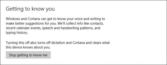 Windows secara otomatis akan "mengenal Anda" dengan mempelajari suara dan tulisan tangan Anda. Itu juga akan mengumpulkan informasi lain tentang Anda seperti acara kalender dan riwayat mengetik.