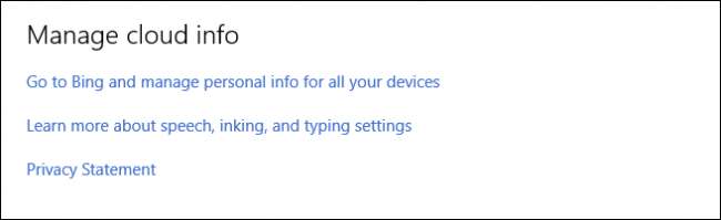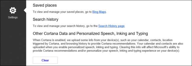 Pada halaman pengaturan Bing, klik tombol "Hapus" di bawah "Data Cortana Lainnya dan Ucapan Pribadi, Penintaan, dan Pengetikan".