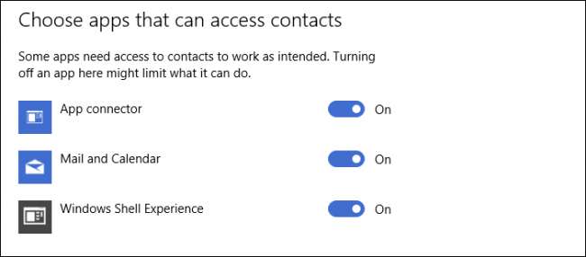 Di Windows 10, akan ada aplikasi tertentu, yang mungkin ingin mengakses kontak Anda. Tidak ada kontrol untuk sepenuhnya menonaktifkan ini, jadi Anda harus mengizinkan atau melarang aplikasi satu per satu.