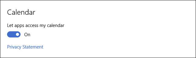 Windows 10 menyertakan kalender, yang dapat diakses oleh aplikasi lain. Sekali lagi, Anda dapat mematikan ini semua secara universal, atau satu aplikasi dalam satu waktu.