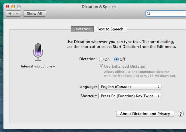 Anda juga bebas menyesuaikan pintasan dikte Anda dan dikte mikrofon mana yang digunakan dari sini. Mikrofon ungu akan menyala saat Anda berbicara jika Mac dapat mendengar Anda.