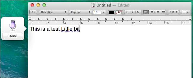 OS X Mavericks berisi fitur "Dikte yang Ditingkatkan". Ini memungkinkan Anda menggunakan Dikte Suara secara offline dan menampilkan teks saat Anda berbicara, sehingga Anda dapat melihat dengan tepat bagaimana pidato Anda ditafsirkan.