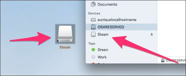 DMG dipasang di dua tempat: di desktop Anda dan di sidebar Finder di bawah hard drive Anda. Mengklik salah satu dari ini membuka file DMG.
