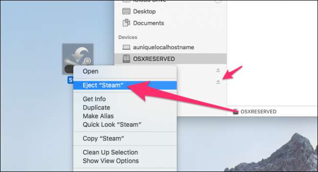 Pertama, keluarkan DMG dengan mengklik kanan dan memilih perintah "Keluarkan", atau dengan menekan tombol keluarkan di sebelah disk di finder. Ini melepas file DMG dari sistem Anda.