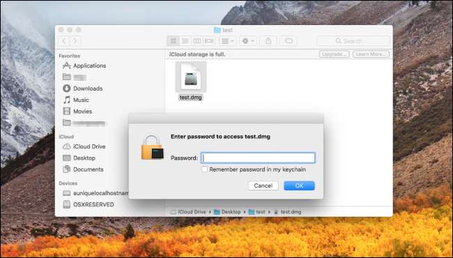 Itu saja. Saat Anda membuka file DMG baru, Anda akan diminta memasukkan kata sandi yang Anda pilih. Setelah mengetik kata sandi, file DMG akan dipasang seperti yang lainnya.