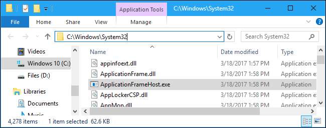 Anda akan melihat jendela File Explorer yang menampilkan file ApplicationFrameHost.exe di C: \ Windows \ System32. Jika Windows menampilkan file dengan nama berbeda — atau yang tidak ada di folder System32 — Anda mengalami masalah.