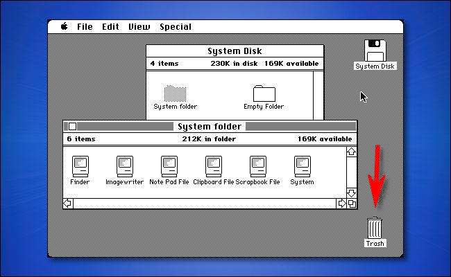 Sejak 1984, semua versi dari sistem operasi desktop Mac telah termasuk tempat sampah (bin limbah), yang secara formal disebut "sampah" di Amerika Serikat dan "bin" di beberapa wilayah. . Konsep berasal dari Apple Lisa , di mana itu disebut " Keranjang sampah . "