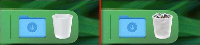 Jika sampah sebelumnya kosong sebelum Anda menyeret item ke dalamnya, ikon tempat sampah itu sendiri akan berubah, menunjukkan kertas kusut di dalamnya.
