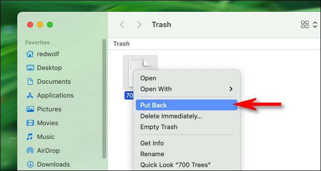 Seperti Recycle Bin di Windows, ketika Anda menghapus file atau menyeretnya ke tempat sampah, ia tetap di sana kecuali Anda "mengosongkan" dengan menggunakan perintah "Kosong sampah" di Finder. Dengan begitu, Anda memiliki kesempatan kedua untuk "mengundurkan diri" file dengan menyeretnya keluar dari sampah sebelum hilang selamanya.