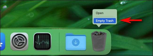 Untuk mengosongkan sampah - yang secara permanen akan menghapus semua file yang Anda tempatkan di tempat sampah - klik kanan ikon tempat sampah dan pilih "Kosong sampah" dari menu yang muncul.