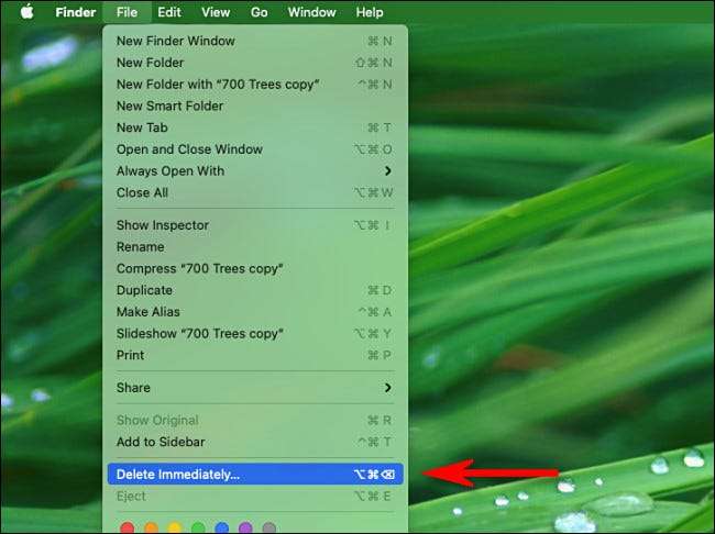 Jika Anda ingin secara instan menghapus file atau folder Tanpa mengirimnya ke tempat sampah, Anda memiliki beberapa pilihan. Di Finder (atau pada desktop), pilih item, lalu tahan tombol opsi pada keyboard Anda dan pilih File & GT; Hapus segera di bilah menu.