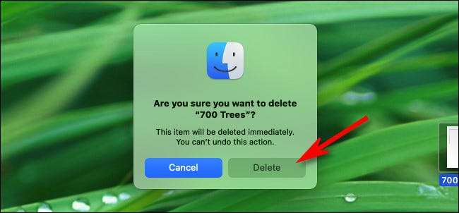 Atau, Anda dapat memilih item dan tekan Option + Command + Delete pada keyboard Anda. Anda akan melihat pesan peringatan yang memberi tahu Anda bahwa Anda akan menghapus barang secara permanen dan tidak ada lagi. Jika Anda siap, klik tombol "Hapus".