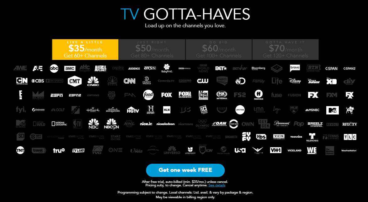 - Harus Memiliki Ini: 120+ saluran, $ 70 sebulan