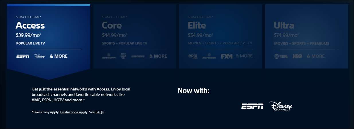 Namun, perusahaan mengambil pendekatan berbasis paket yang lebih tradisional untuk paket streaming-nya, jadi menemukan yang tepat untuk Anda mungkin terasa seperti berbelanja kabel tradisional. Namun, itu tidak membuatnya menjadi hal yang buruk. Berikut ikhtisar singkat tentang apa yang ditawarkan:
