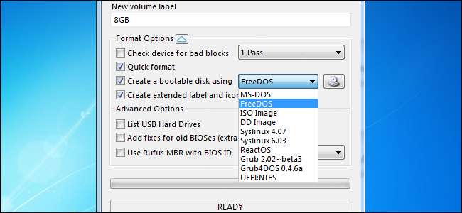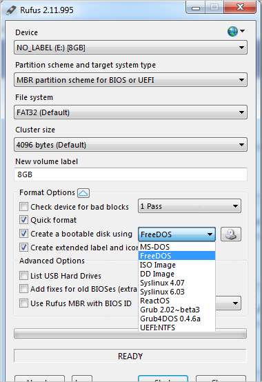 - FreeDOS: Ini membuat versi kosong dari FreeDOS . FreeDOS adalah versi perangkat lunak gratis dari MS-DOS, yang sepenuhnya kompatibel dengan MS-DOS, tetapi juga memiliki keunggulan sebagai sumber terbuka. Dibandingkan dengan MS-DOS, siapa pun dapat mendistribusikan kembali FreeDOS, jadi file boot FreeDOS disertakan dalam Rufus.