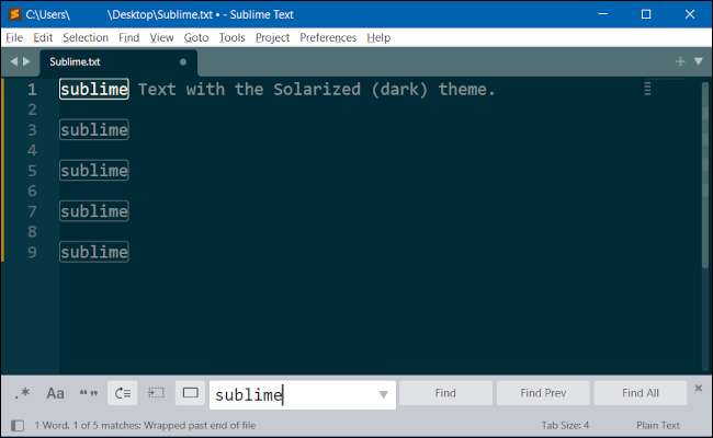 Alternatif untuk item menu, yang jauh lebih cepat, adalah menggunakan pintasan keyboard. Katakanlah Anda ingin mengganti semua contoh kata "luhur" dan menggantinya dengan "ilahi." Apa yang akan Anda lakukan adalah meletakkan kursor di tengah kata itu atau mendekatinya, dan kemudian tekan Alt + F3. Yang menyoroti setiap contoh kata itu dalam file Anda. Sekarang tekan tombol backspace untuk menghapus "luhur", ketik "ilahi," dan Anda sudah selesai.