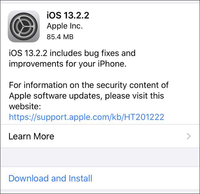 Dovrai comunque aggiornare manualmente il tuo iPhone al successivo maggiore versione di iOS (ad esempio, da iOS 13 a iOS 14) quando sarà il momento. Questo è in base alla progettazione e significa che puoi ritardare l'aggiornamento se sei preoccupato per i problemi iniziali che si presentano con ogni nuova importante revisione di iOS.