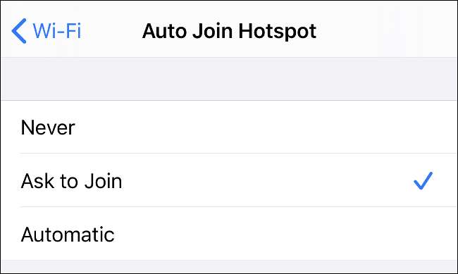 Vai su Impostazioni> Wi-Fi e imposta "Accesso automatico all'hotspot" per avvisarti quando ti connetti a un nuovo hotspot. Se lo imposti su "Automatico", il tuo iPhone potrebbe unirsi automaticamente agli hotspot pubblici.