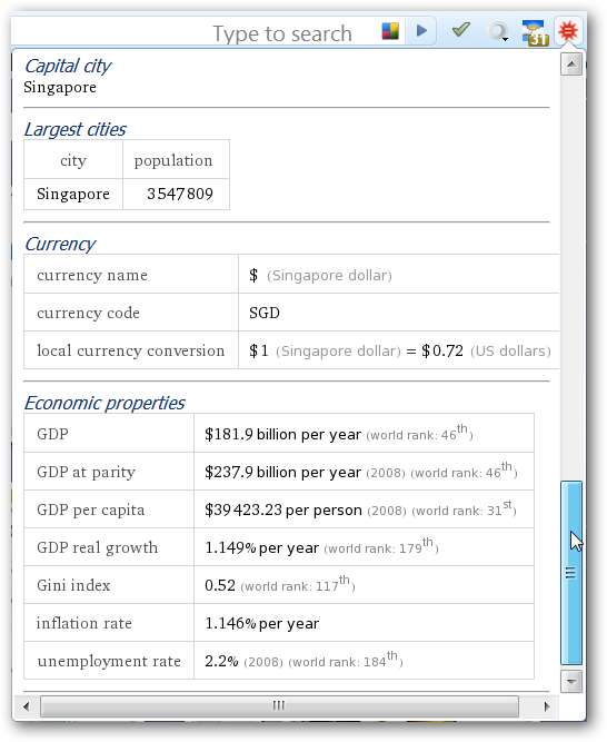 E il termine di ricerca finale era "Microsoft". La finestra a discesa conserverà i risultati dell'ultima ricerca condotta fino a quando non verrà inserito un nuovo termine (anche se si riavvia il browser). Molto utile e conveniente se hai bisogno di fare riferimento a quella particolare informazione per un po 'durante la tua giornata.