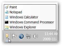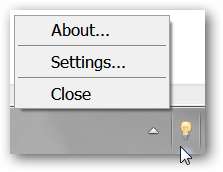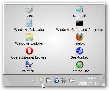 L'installazione di SE-TrayMenu è semplice e veloce ... una volta terminato vedrai una piccola "Icona della lampadina" nell '"Area della barra delle applicazioni". Tieni semplicemente il mouse su di esso per vedere il layout predefinito, il tema e le app disponibili.