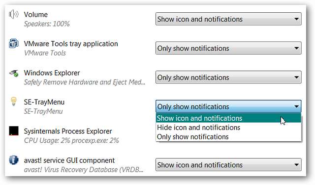 Per accedere alle impostazioni per SE-TrayMenu, fare clic con il tasto destro del mouse sull '"icona della barra delle applicazioni".