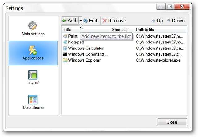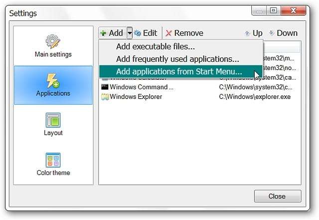 Fare clic sulla parte della freccia del "pulsante Aggiungi" per accedere al "menu a discesa". L'opzione più rapida e conveniente è selezionare "Aggiungi applicazioni dal menu Start ...".