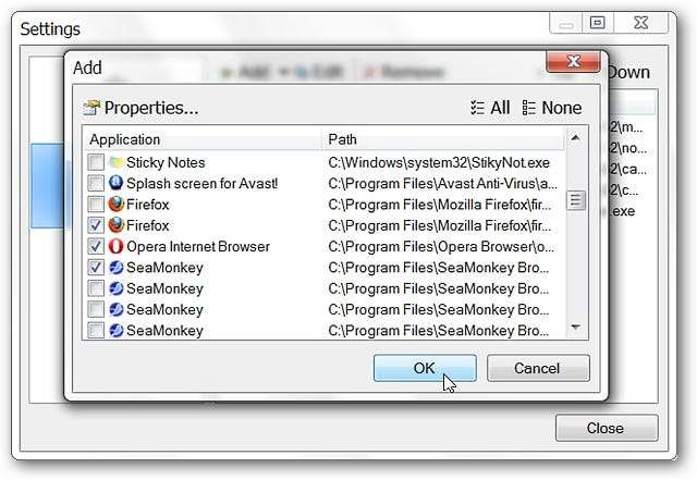 Dopo aver selezionato "Aggiungi applicazioni dal menu Start ...", vedrai la seguente finestra. Scorri l'elenco e seleziona le app che desideri aggiungere a SE-TrayMenu. Al termine, fare clic su "OK".