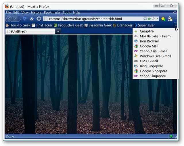 Non appena hai installato l'estensione e riavviato Firefox, vedrai le tre righe predefinite. Se non sei preoccupato per lo spazio dell'interfaccia utente, allora sei a posto. Quelli di voi che amano mantenere lo spazio dell'interfaccia utente al minimo vorranno dare un'occhiata a questa parte successiva ...
