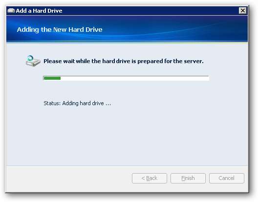 Attendi qualche istante mentre l'unità viene formattata e preparata per il server.