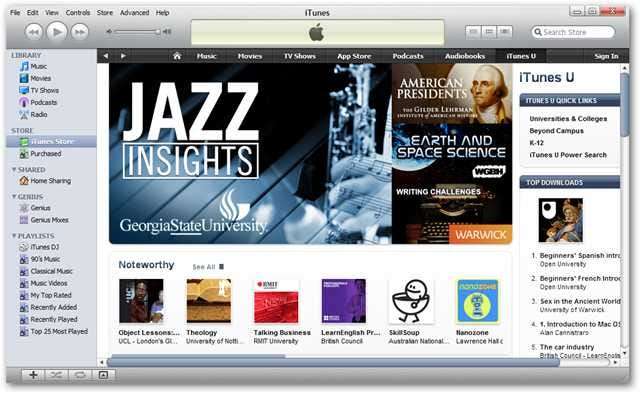 Non c'è motivo di fare affidamento solo sulle tue classi per le informazioni. Se desideri saperne di più da professori di prim'ordine in tutto il mondo, dai un'occhiata a iTunes U. Semplicemente scarica iTunes e installalo normalmente e avrai accesso a migliaia di lezioni gratuitamente. Il tuo college potrebbe persino aggiungere video o audio dalle tue lezioni su iTunes U, che è un ottimo modo per recuperare le lezioni che potresti aver perso.
