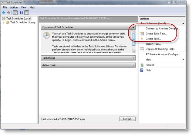 Viene quindi visualizzata la finestra Utilità di pianificazione. Per pianificare un backup, fare clic su Crea attività di base ...