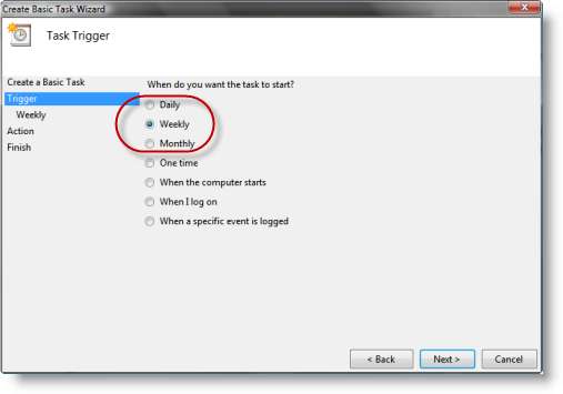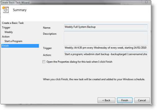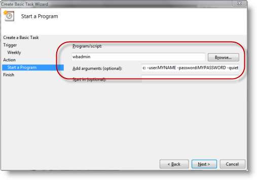 Automatizzazione di un normale backup completo del sistema utilizzando l'Utilità di pianificazione di Windows